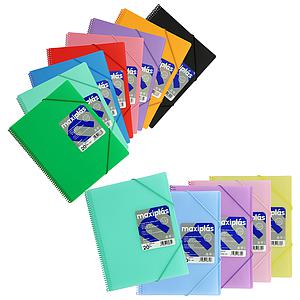 El plástico y el polipropileno son los materiales que más destacan para las tapas en este producto. Estas carpetas de plástico pueden tener formato de libretas o de carpeta, teniendo este un cierre con gomas tanto en la parte superior como inferior.