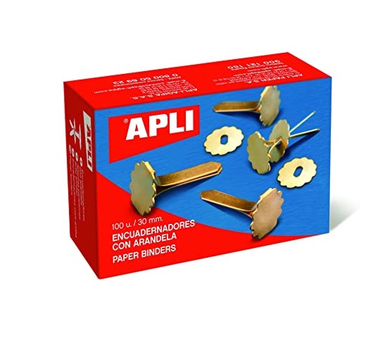 Caja de 100 encuadernadores de 17 mm totalmente planos sinarandela Marca Apli Ref 131171