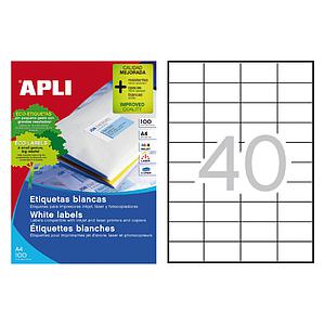 CAJA DE 100 HOJAS DE ETIQUETAS BLANCAS. TAMAÑO: 52,5x29,7mm. Ref. 1286